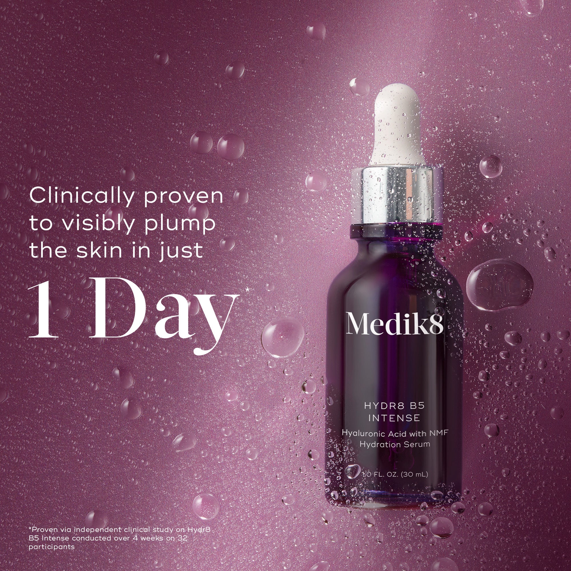 In just 24 hours, replenish and recharge the skin’s natural moisture levels for clinically proven smoothing and plumping results.* Hydr8 B5 Intense is Medik8’s ultimate hyaluronic acid serum.